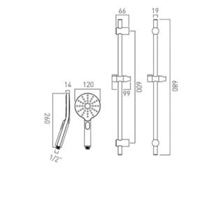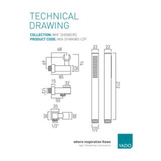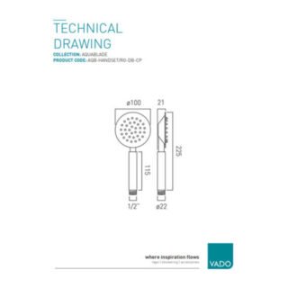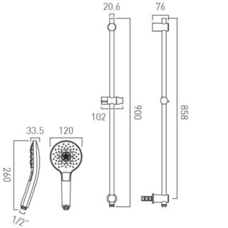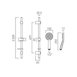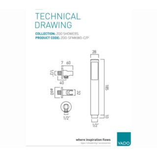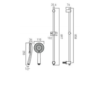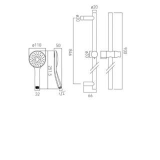 Vado Evolve Slide Shower Rail Kit With Four Function Shower Handset And Smooth Shower Hose - Chrome