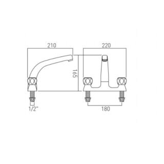 Vado Safari 2 Hole Wall Mounted Basin Mixer Tap For Low Pressure System