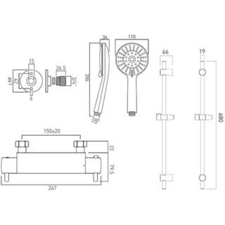Vado Prima 4 Function Thermostatic Exposed Shower Kit - Chrome