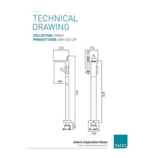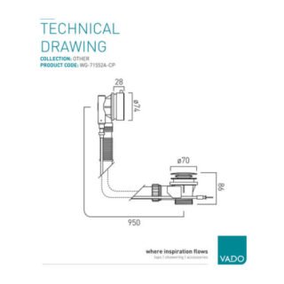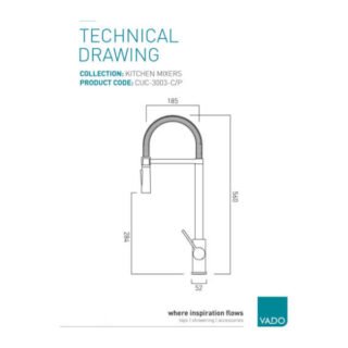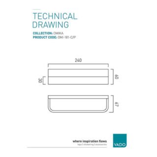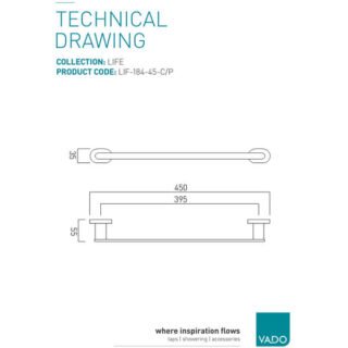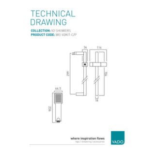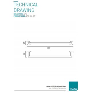 Vado Space Slide Rail Kit With Shower Hose & Retainer 680mm - Chrome