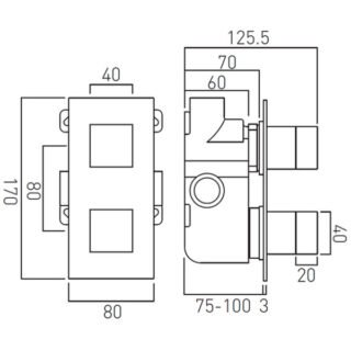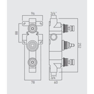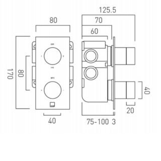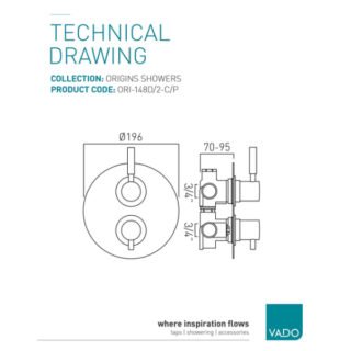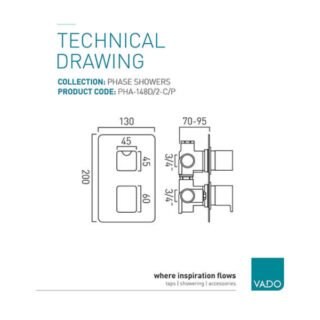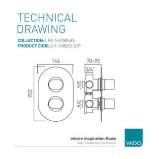 Vado Photon 3 Outlet 2 Handle Vertical Thermostatic Shower Valve - Chrome