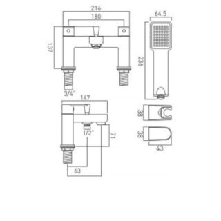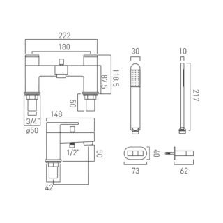 Vado Irlo Deck Mounted Bath Shower Mixer Tap - Chrome