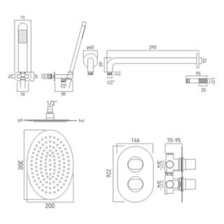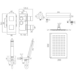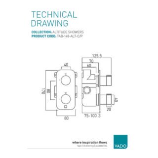 Vado Tablet Altitude Thermostatic Triple Concealed Mixer Shower With Shower Kit + Fixed Head - Chrome