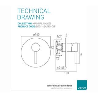 Vado Individual Origins 1 Outlet Concealed Manual Shower Valve - Brushed Gold