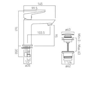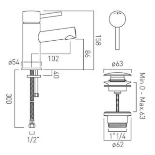Vado Safari Knob Mono Basin Mixer Tap With Waste For Low Pressure System