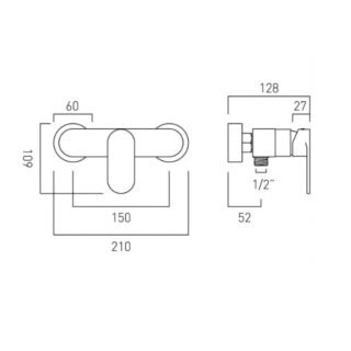 Vado Individual Omika Noir Single Function Mini Shower Kit with Integrated Outlet And Bracket - Polished Black