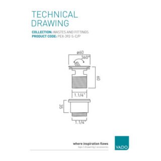 Vado Slotted Captive Basin Waste 1.1/4" - Chrome