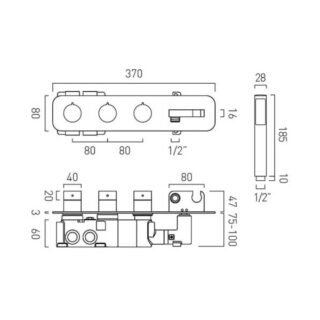 Vado Tablet Io Altitude 3 Outlet 3 Handle Concealed Thermostatic Shower Valve - Chrome