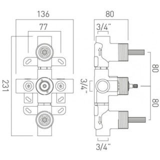 Vado 1 Outlet, 3 Handle 148D Concealed Thermostatic Shower Valve Body