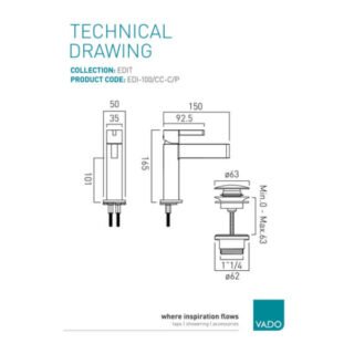 Vado Edit Mono Basin Mixer Tap With Universal Waste - Chrome