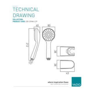 Vado Eris Single Function Shower Handset With Hose & Bracket - Chrome