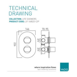 Vado Life 2 Outlet 2 Handle Vertical Thermostatic Shower Valve - Chrome