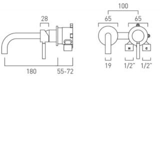 Vado Origins Slimline 2-Hole Basin Mixer Tap Knurled Handle Wall Mounted - Chrome
