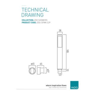 Vado Zoo Single Function Shower Handset With Hose & Bracket - Chrome