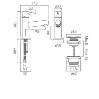 Vado Arrondi Deck Mounted Mini Mono Basin Mixer Tap with Universal Basin Waste - Chrome