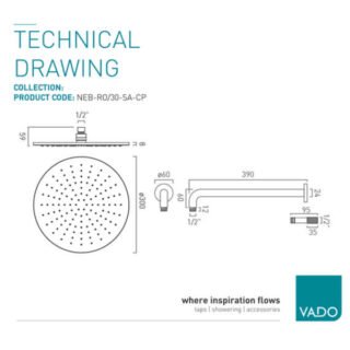 Vado Nebula Square Rain Shower Head With Arm 200mm Wide - Chrome