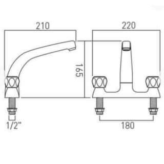 Vado Astra 2 Hole Sink Mixer Tap With Swivel Spout Lever Handle - Chrome