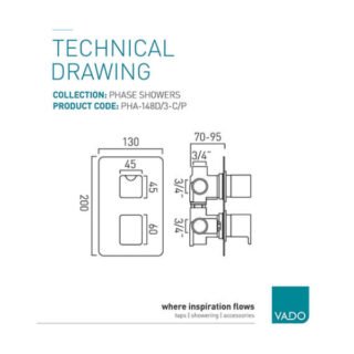 Vado Phase 3 Outlet 2 Handle Vertical Thermostatic Shower Valve - Chrome