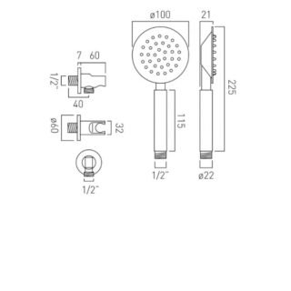 Vado Aquablade Round Single Function Shower Handset With Shower Hose And Bracket - Chrome