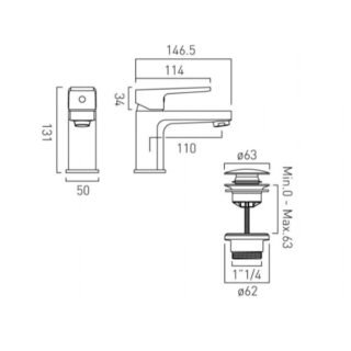 Vado Axces Ekko Mini Mono Basin Mixer Tap With Push Basin Waste - Chrome