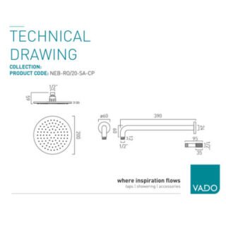 Vado Nebula 200mm Round Rain Shower Head With Arm - Chrome