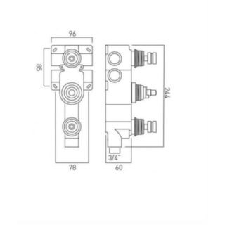 Vado Tablet Shower Valve Body For Concealed 3 Outlet-3 Handle Thermostatic Shower Valve - Chrome