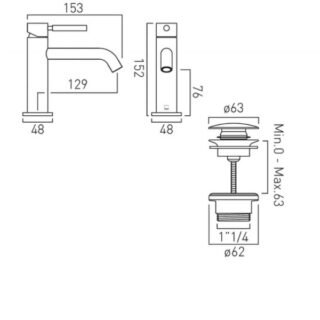 Vado Origins Slimline Mono Basin Mixer Tap Knurled Handle With Universal Waste - Chrome