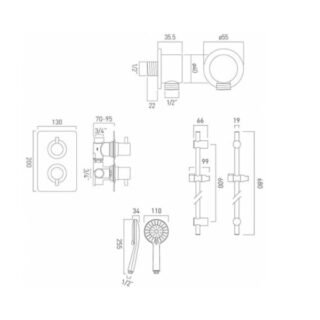 Vado Celsius 1 Outlet Square Thermostatic Shower Set - Chrome