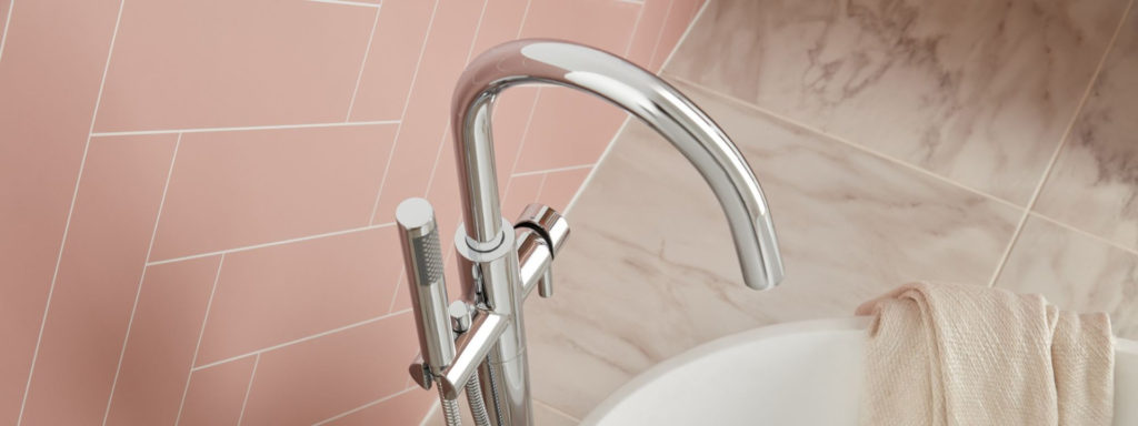 Bath fittings must deliver higher flow rates to fill a tub quickly. Common options include bath filler taps (a single spout), traditional bath pillar taps and bath shower mixer taps that incorporate a handheld shower head. Freestanding bath taps are designed for roll‑top baths and freestanding tubs; they mount to the floor and make a luxurious statement. You’ll also find four‑ and five‑hole deck‑mounted sets that separate the spout and controls for flexible positioning.