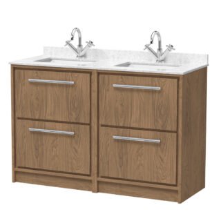 Hudson Reed Lille 4 Drawer Floorstanding Vanity Unit With Marble Top Double Basin – 1200mm Wide – 2 TH