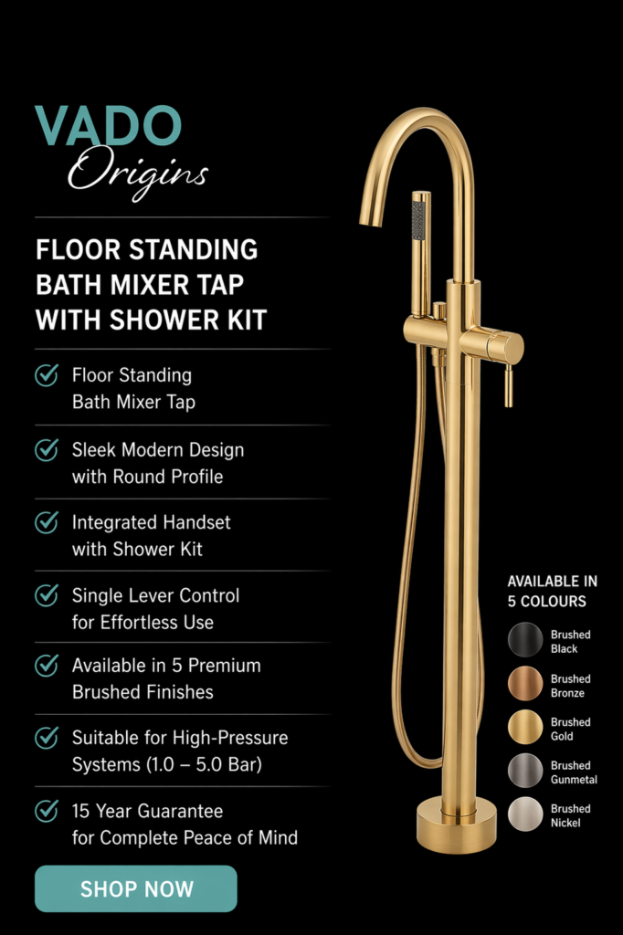Vado Individual Origins Floor Standing Bath Mixer Tap With Shower Kit - Brushed Gold