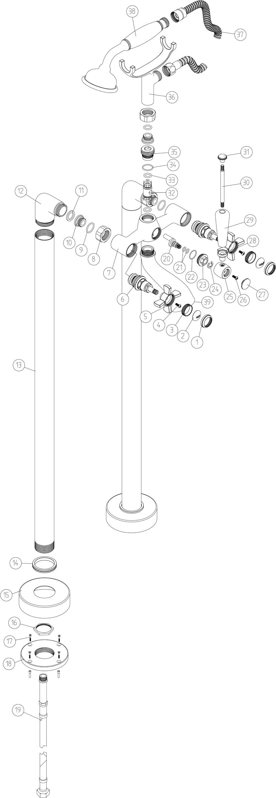 Bandha Floor Standing Bath/Shower Mixer - Chrome