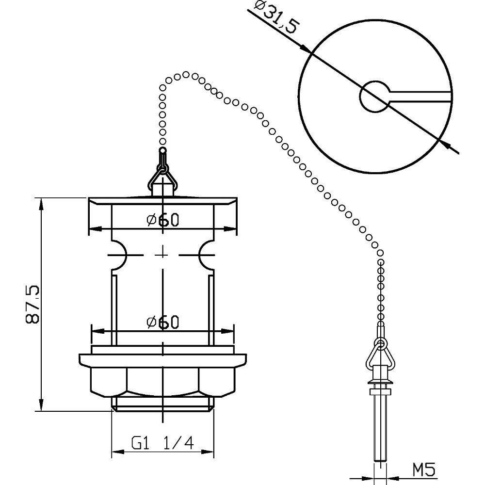 Hudson Reed Contract Basin Waste With Brass Plug And Ball Chain - Chrome