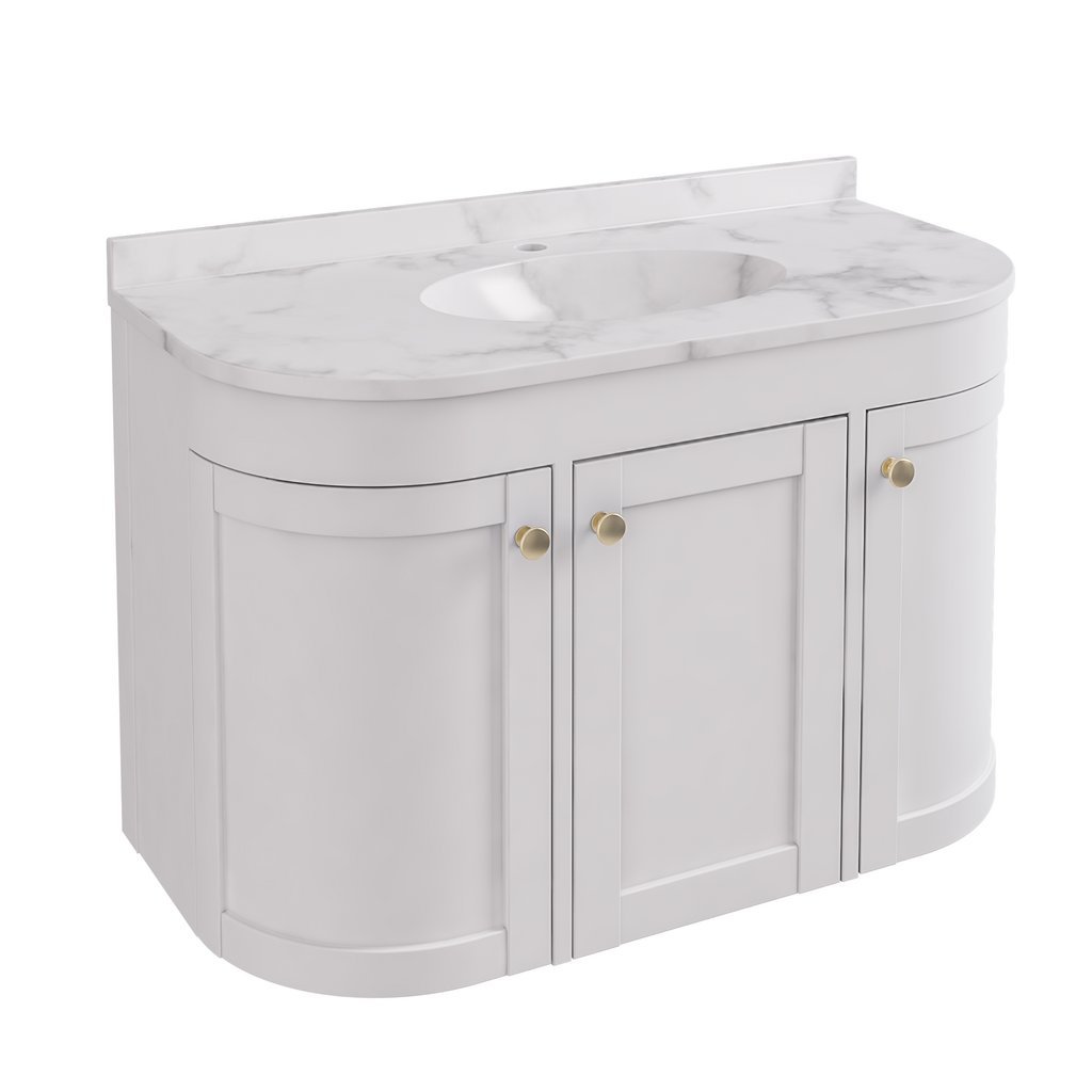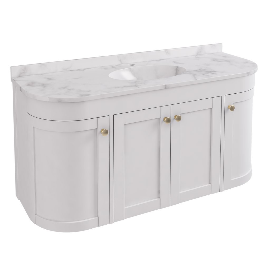 Eastbrook Hardwick 2 Door Curved Wall Hung Vanity Unit With Quartz Basin – 1 TH - 1200mm, Matt White