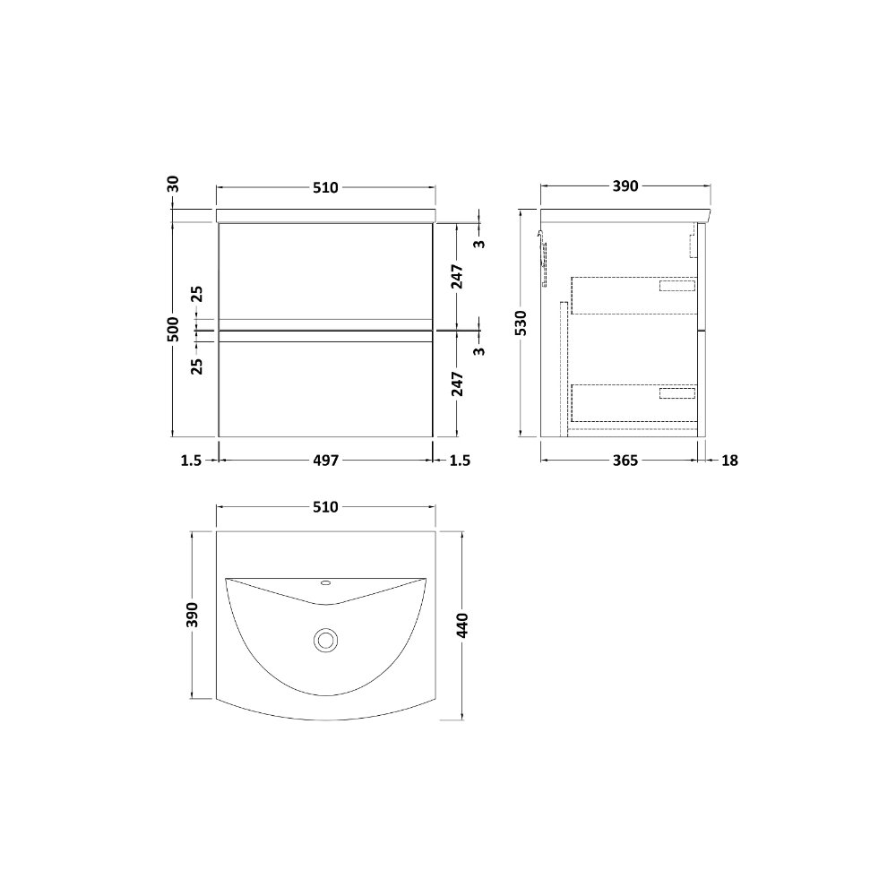 Hudson Reed Urban 2 Drawer Wall Hung Vanity Unit With Curved Basin - 1 TH