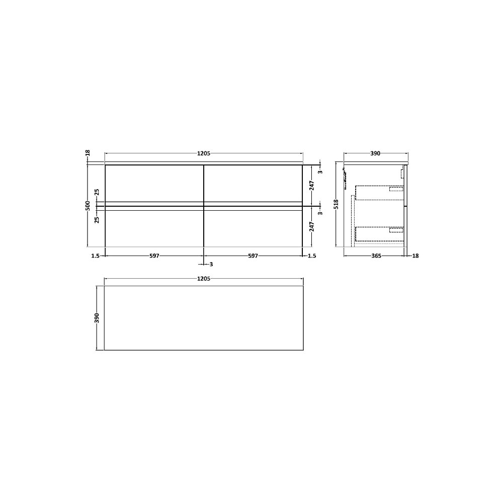 Hudson Reed Urban 4 Drawer Wall Hung Vanity Unit With Double Ceramic Basin - 1200mm Wide - 2 TH