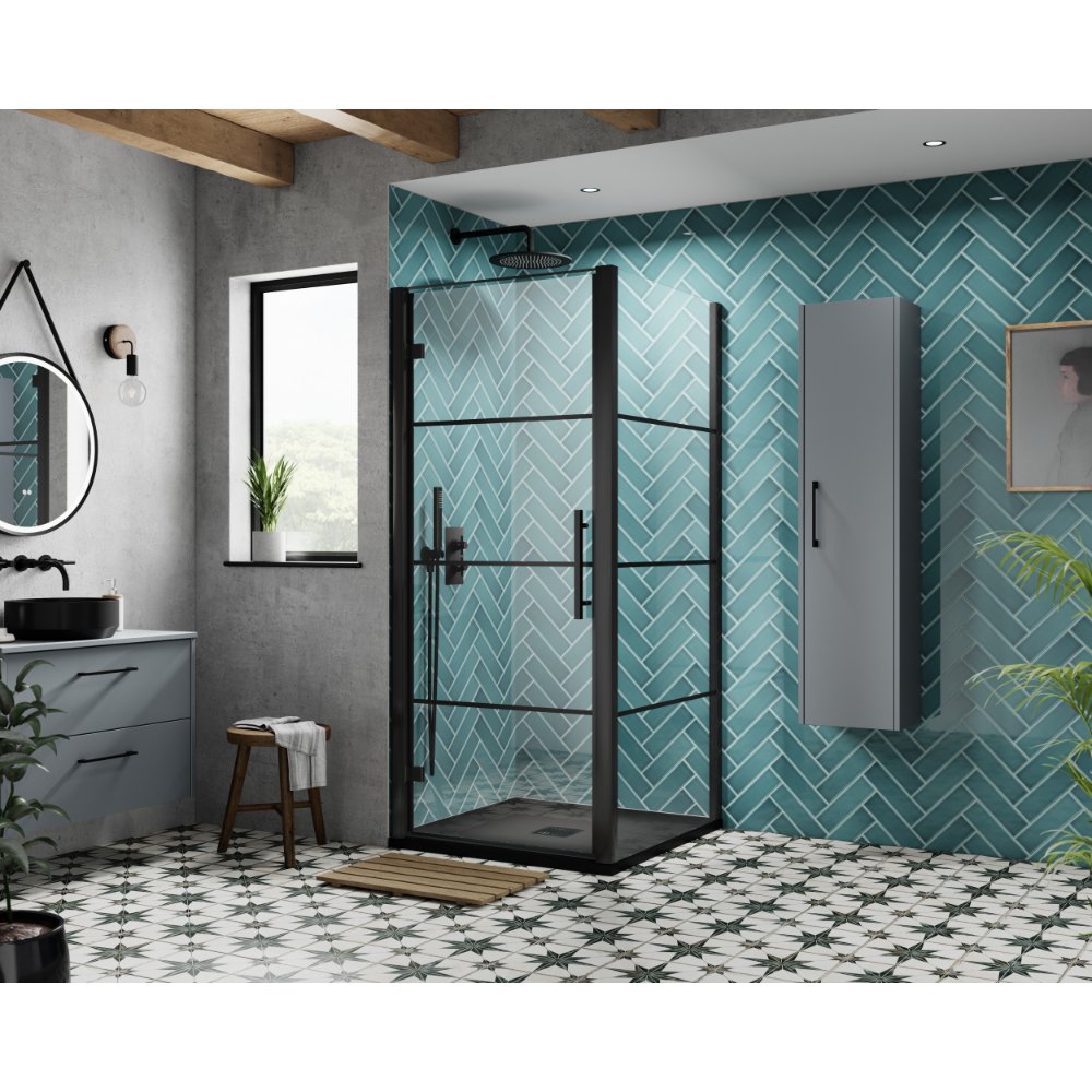 Merlyn Framed Recessed Hinged Shower Door And Inline Panel - Black