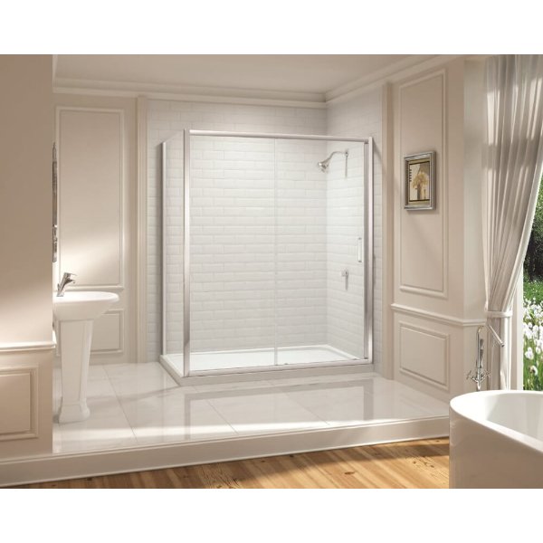 Eastbrook Volente Sliding Shower Door With Side Panel – 6mm Clear Glass – Chrome – 2000mm X 700mm