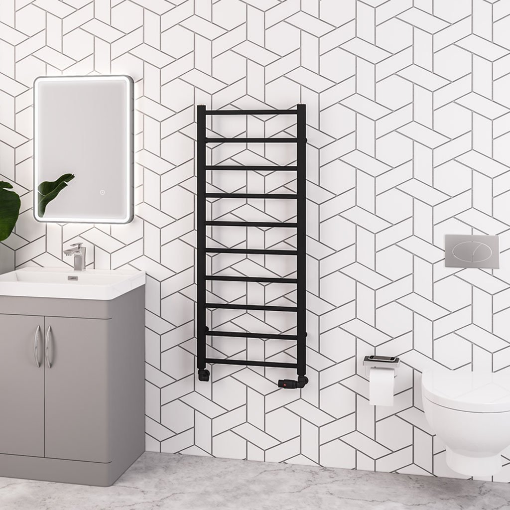 Eastbrook Tuscan Round Straight Heated Towel Rail – Matt Black - 1200mm x 500mm