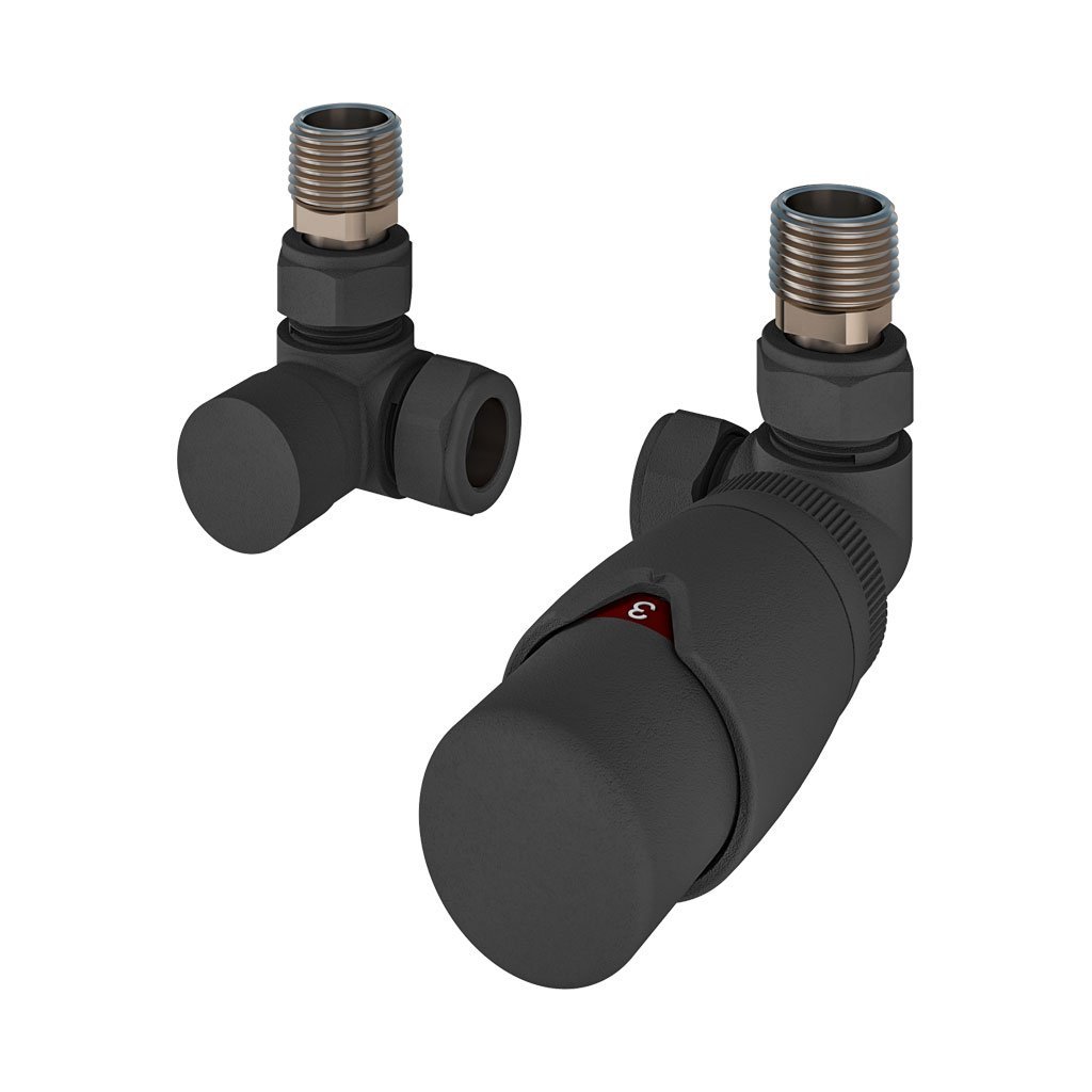Eastbrook Darlington Thermostatic Designer Corner Radiator Valve With Lock Shield - Matt Anthracite