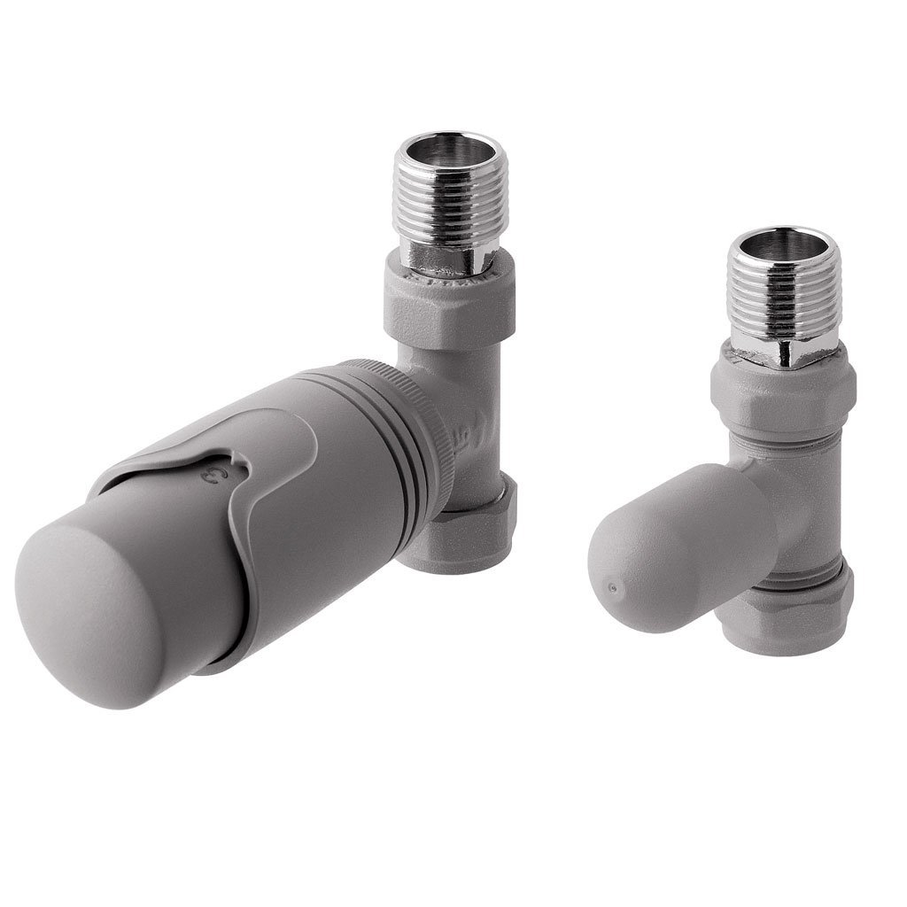 Eastbrook Biava Thermostatic Corner Radiator Valve And Lock Shield - Matt Grey