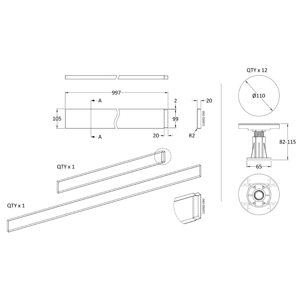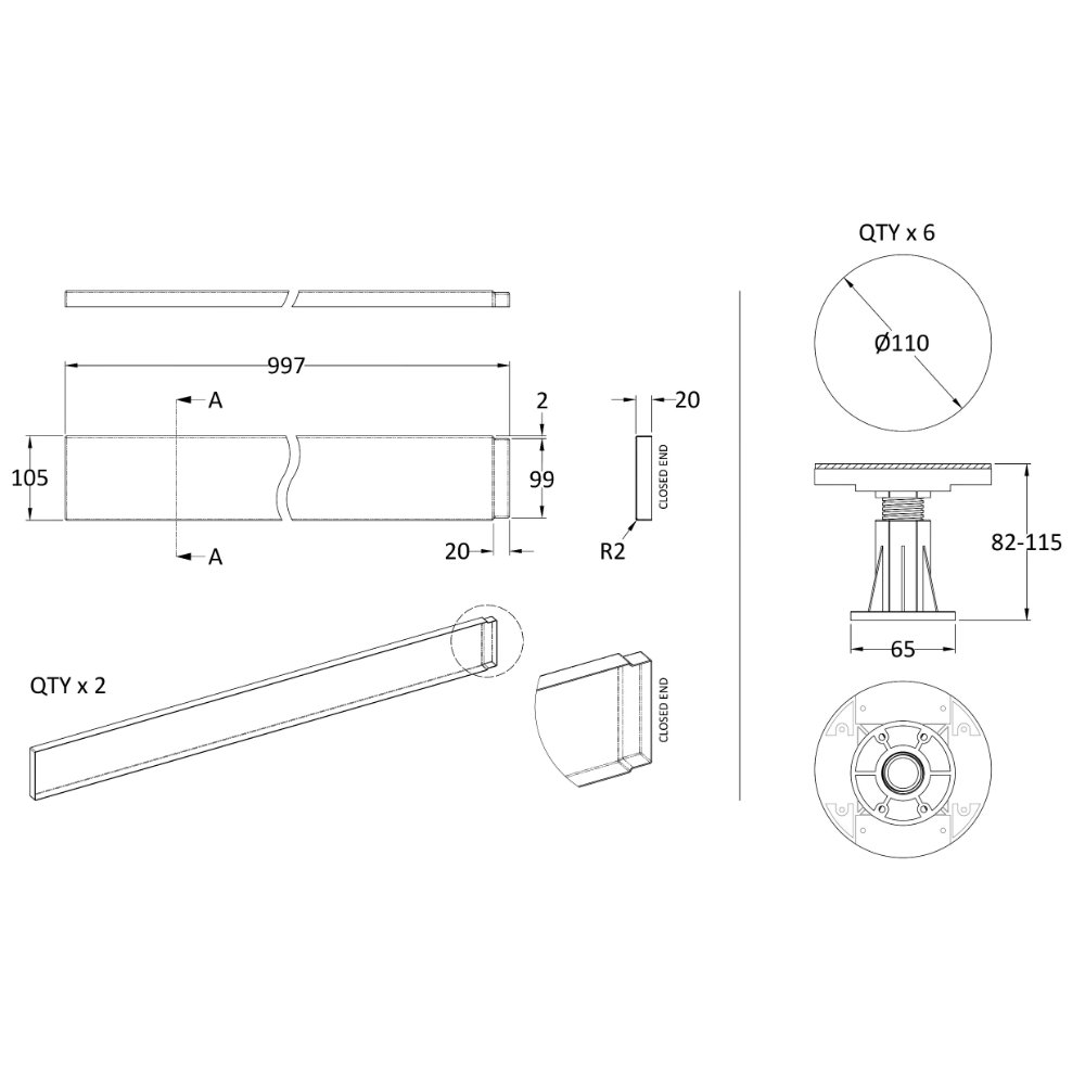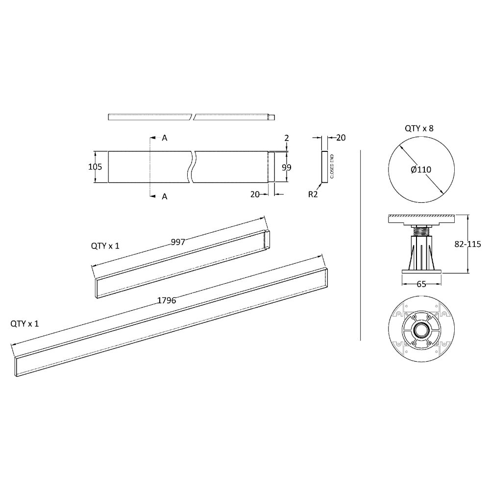 Hudson Reed Leg & Plinth Kit (1700mm And 1000mm Plinth) - White