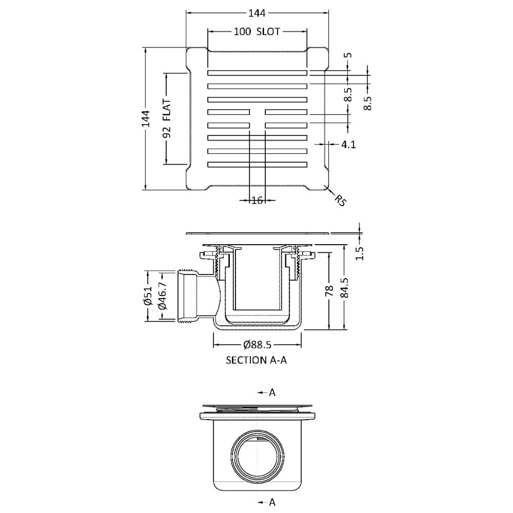 Hudson Reed Square Shower Tray Waste With Trap - Brushed Brass