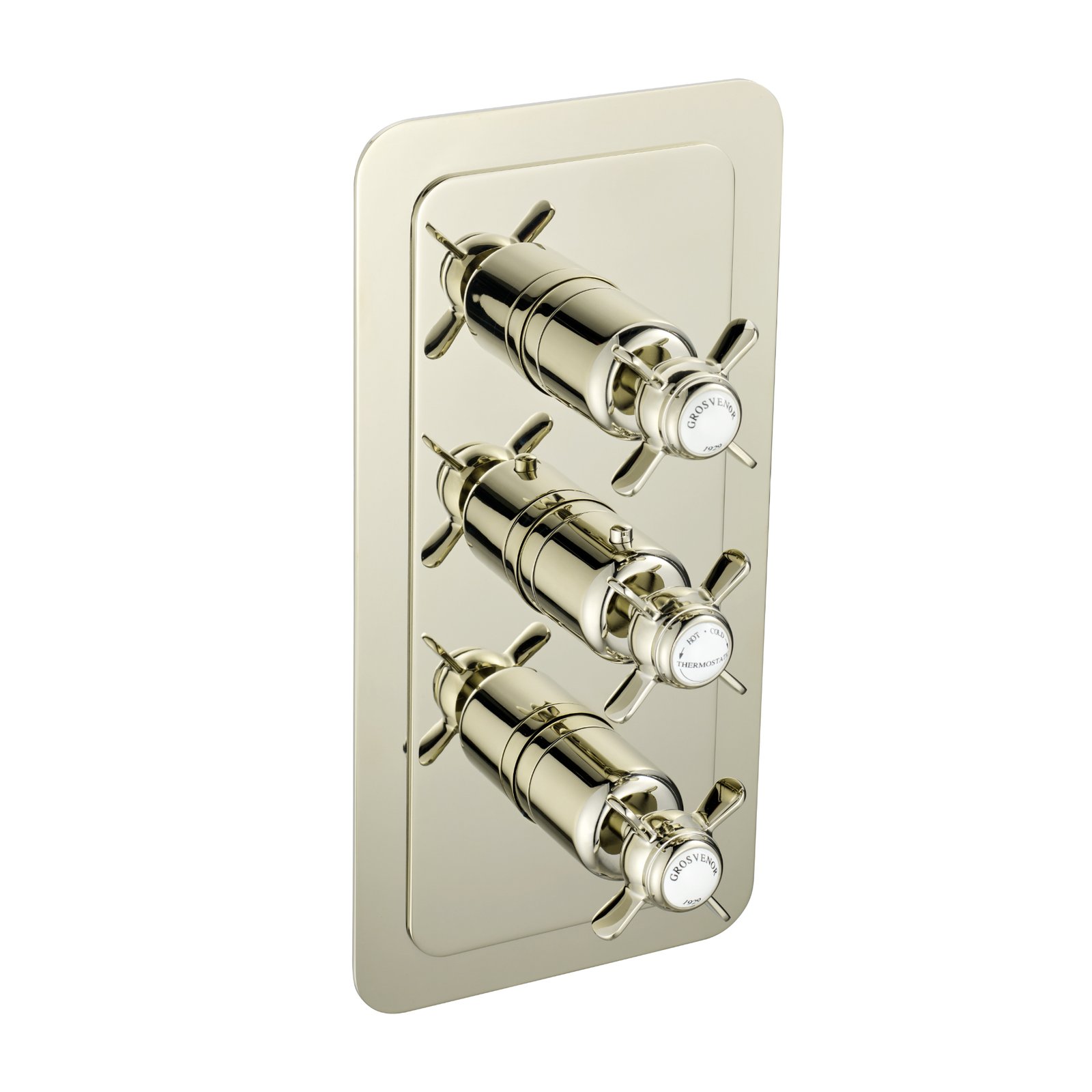JTP Grosvenor 2 Outlet 3 Handle Pinch Thermostatic Concealed Shower Valve – Various Colour - Light Gold