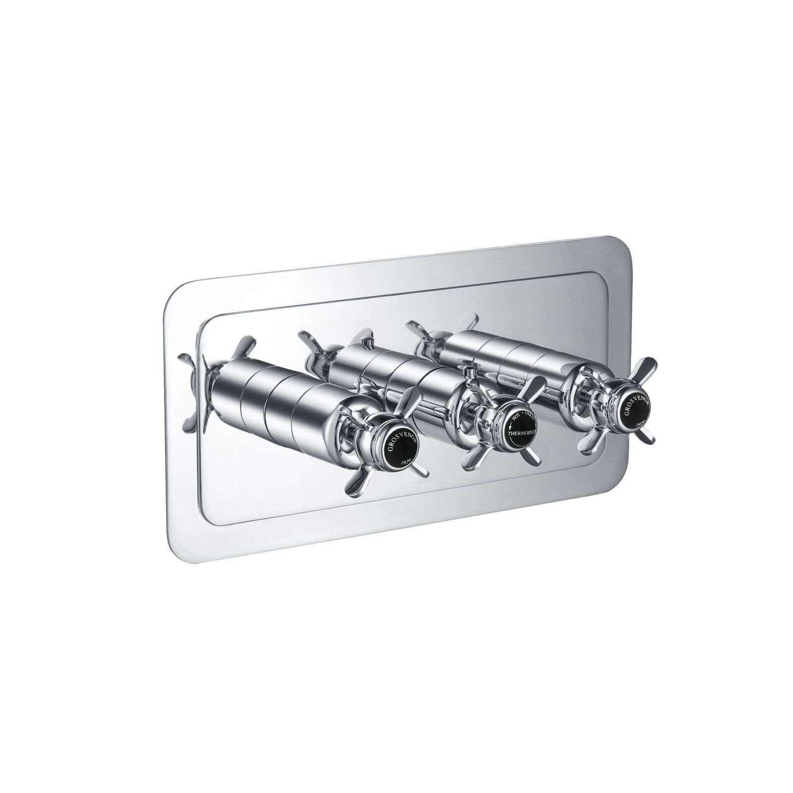 JTP Grosvenor 2 Outlet 3 Handle Pinch Thermostatic Concealed Shower Valve – Various Colour - Chrome