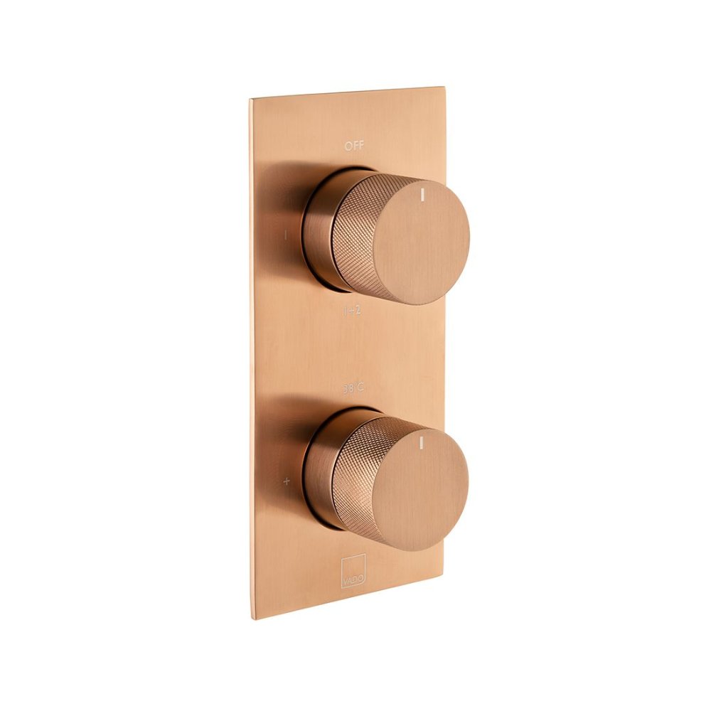 Vado Individual Tablet Vertical 2 Outlet Thermostatic Concealed Valve with Knurled Handles - Brushed Bronze