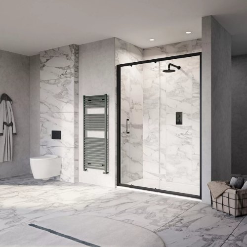 Tissino Rivelo Recessed Sliding Shower Door - 1700mm, Matt Black