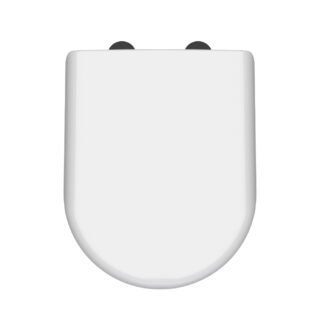 Hudson Reed D Shaped Soft Close Toilet Seat With Hinges And Cover Cap – 364mm Wide – Gloss White