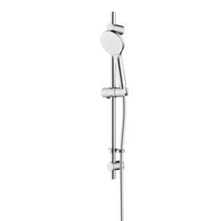Flova Levo Round Slide Rail With 5 Function Shower Handset, Smooth Hose And Integral Wall Outlet Elbow – Chrome
