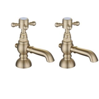 Tanu Basin Pillar Taps – Brushed Brass